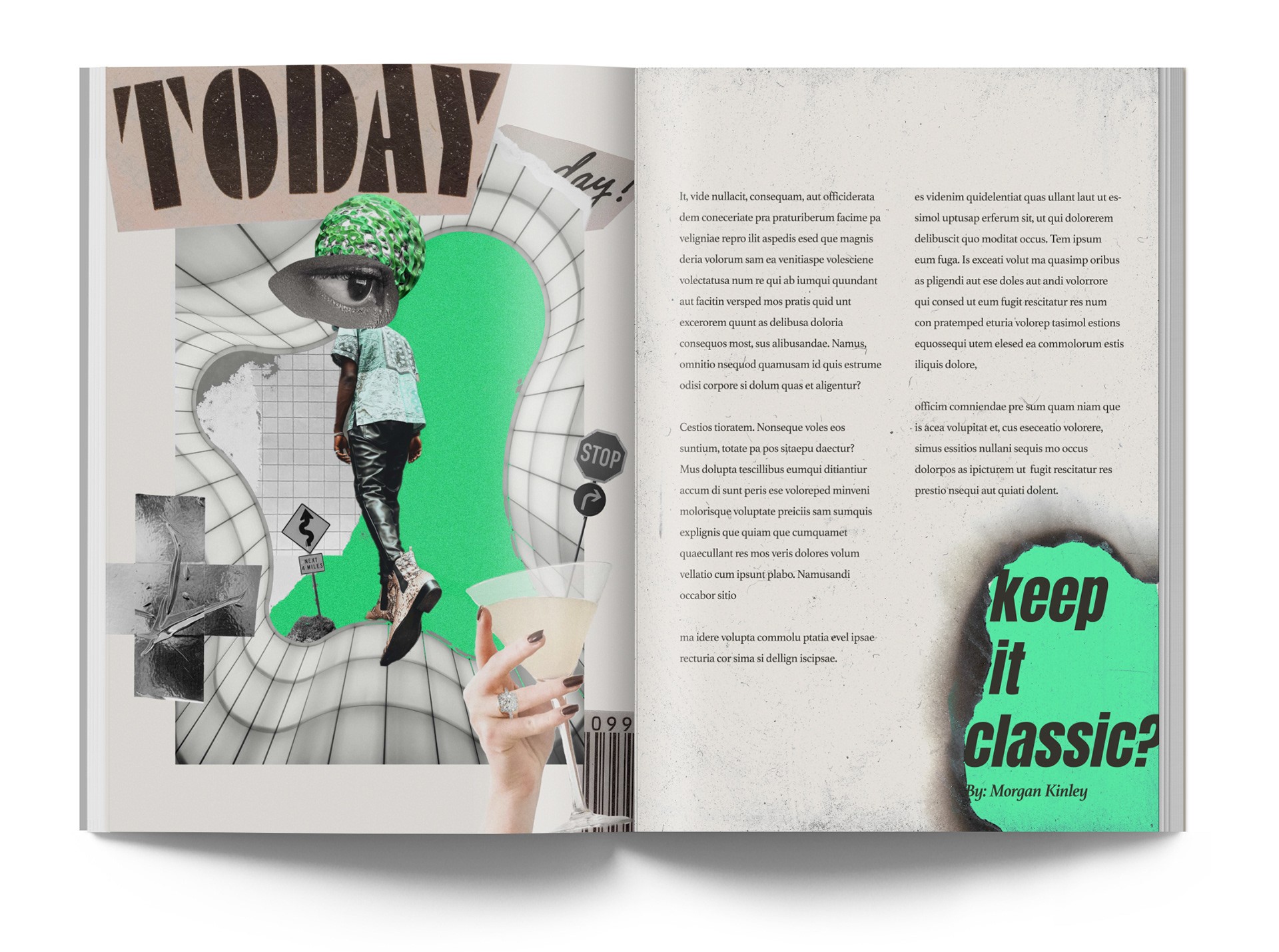 Here is a cover and spread concept I designed for mock fashion/art magazine "Knockout".